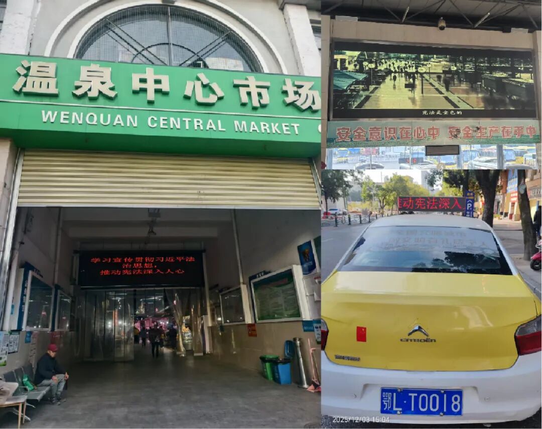 集团在办公楼、集贸市场、客运站等重点区域张贴海报、播放视频,并在出租车上滚动播放宣传标语,广域营造宪法宣传浓厚氛围。同时依托集团网站、微信公众号及内部工作群持续推送宪法知识,让法治宣传“触手可及”,不断提升职工和群众的宪法认知度与参与度。